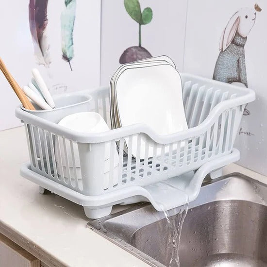 Smart Dish Drying Rack with Quick Drainage & Cutlery Holder
